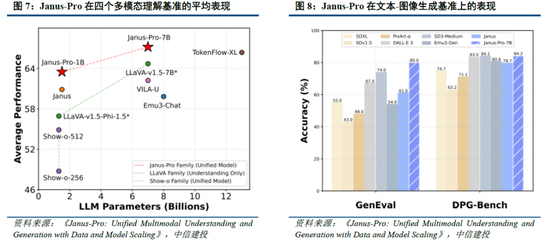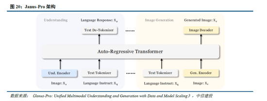 我们认为,多模态模型整体仍处于技术探索过程中,Janus系列核心在于提供了一种理解和生成解耦的架构,一定程度提升了模型表现,后续自回归和DiT技术将进一步发展,带来多模态模型性能的持续优化。