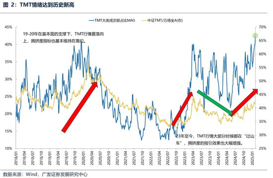 2.中期而言,要关注科技成长风格从主题驱动转为基本面预期驱动,有进入趋势性占优的可能性,在这种情况下,“tmt成交额占比超过40%”可能就不再是压制因素。
