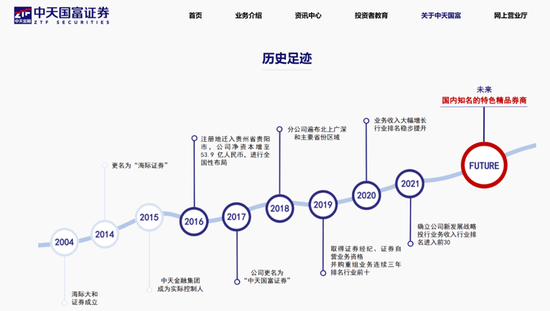在中天国富证券的官网,其历史足迹介绍到2021年戛然而止,而在未来的定位中,“国内知名的特色精品券商”尤其瞩目。