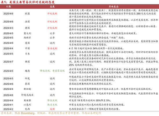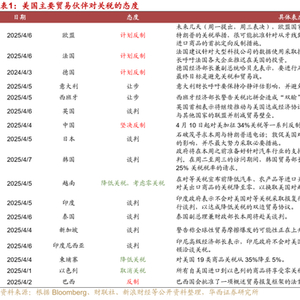 2)除了我国对美国进行坚决反制之外,欧盟、巴西等也在考虑对美进行反制。欧盟对于是否反制内部存在分歧,德国和法国表态相对强硬,而意大利和西班牙倾向于让步。欧盟即将落地的反制措施主要针对前期的钢铝和汽车关税,而20%对等关税的反制措施尚未明确。这部分关税,欧盟是谈判还是反制,对海外市场情绪影响较大。此外,巴西国会批准了一项报复框架法案。