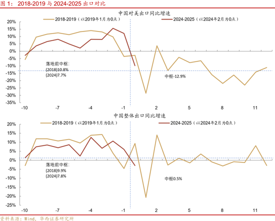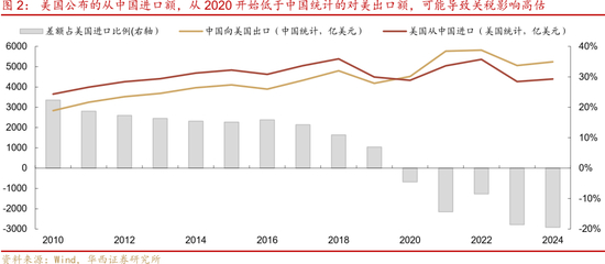 不过,美国进口商低报进口价格,也可能使得以上估算存在高估。如我们对比中国海关统计的对美出口额,与美国海关统计的从中国进口额,可以发现,在2020年之前,前者低于后者,这主要是进口国要回溯最终来源地,将部分转口纳入统计。但在2020以来,前者高于后者,2021-2024平均高15%,这种异常表现,指向美国进口商可能在压低进口报关价格,以少交关税。这就使得我们前述估计的短期降幅33%,中期降幅48%,可能被压低进口报价影响而高估。因而关税对出口的短期拖累可能低于5%,或许下限仅约3%,对现价GDP的直接拖累效应或在0.5%左右。