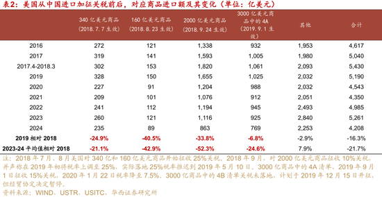 2)160亿美元商品目录2018年8月23日关税25%生效,2019相对2018的降幅为40.5%;