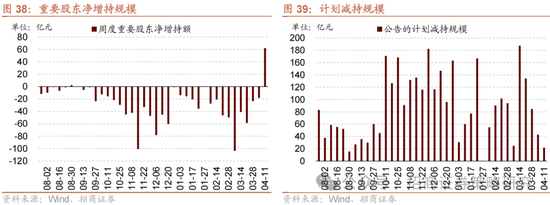 同时,上市公司也集中开展增持、回购行动。本周135家上市公司公布股票回购计划,回购规模上限合计561亿;89家上市公司重要股东宣布增持计划,增持规模上限合计357亿,其中国央企增持上限272亿。本周重要股东二级市场增持62.2亿元,净增持规模较高的行业包括银行、电子、基础化工等。