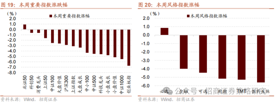本周影响A股市场整体表现较差的主要原因有:(1)虽然近期央行、金融监管总局、中央汇金公司集中出台政策稳市,但需修复时间;(2)市场情绪需要逐渐修复;(3)中美贸易摩擦升级;(4)周一全球股市暴跌,港股同步下挫,A股市场情绪恐慌。
