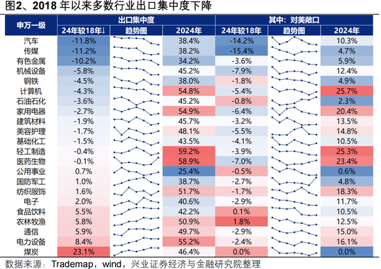 二、各行业出口分散化程度如何?