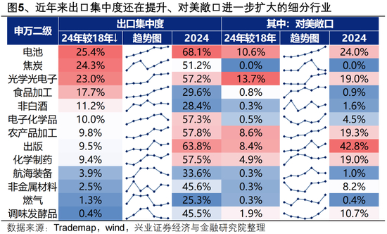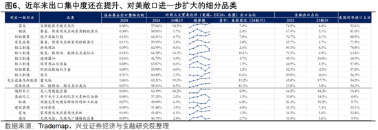 此外,在关税1.0之后,出口集中度还在提升、对美敞口进一步扩大的品类主要包括: