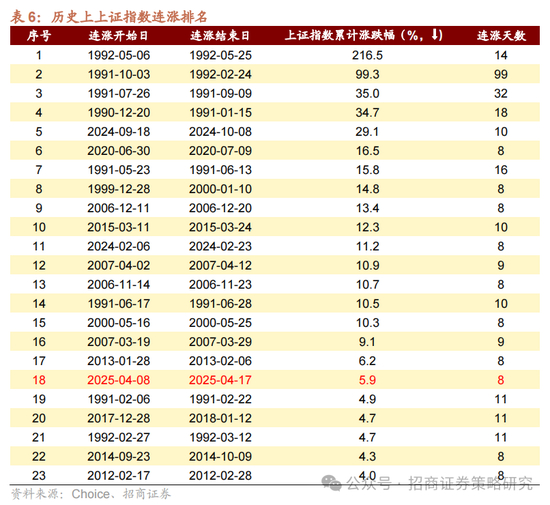 4月17日,沪指收涨0.13%,自4月7日以来再度连涨8天,累计涨幅为5.93%,在历史上上证指数23次连涨纪录中排名第18位。