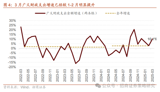 从单月增速来看,3月广义财政支出增速已经较1-2月明显提升。