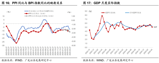工业品价格涨跌互现,模型提示4月第四周环比为-0.52%,预计4月全月环比-0.43%,同比-2.72%。若利用BPI指数同比与PPI同比回归建模,则4月PPI同比预计回落至-2.76%,两种方式下估计相对接近。CPI、PPI对应的平减指数同比预计在4月回落至-1.07%(3月模拟为-0.83%)。