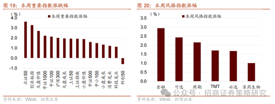 【复盘·内观】本周A股市场整体表现较好,主要原因为:(1)本周日均成交额较节前明显改善,情绪面显著回暖;(2)央行降准、降息、新设立结构性货币政策工具等多项政策火速落地;(3)美联储维持基准利率不变,中美经贸高层会谈释放关税战阶段性缓和信号;(4)港股震荡上行,外围市场上涨带动。