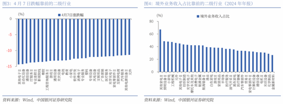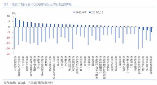2024年年报显示,港股半导体、耐用消费品、国防军工、家电、纺织服装、家庭用品、硬件设备、机械、医药生物、造纸与包装等板块出口到美国的业务占比相对较高,受中美关税政策影响较大。
