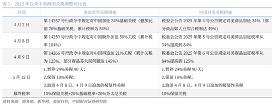 5月12日,《中美日内瓦经贸会谈联合声明》发布。本次《声明》的达成,体现了中美两国在经历数月高强度关税对抗后,通过制度性对话实现了阶段性成果。从协议内容看,美方取消91%加征关税、暂停24%关税90天,中方同步取消等比例反制措施,双方建立常态化磋商机制(副总理/财长级对话)。90天暂停期为后续磋商创造了较为稳定的窗口期,也为双方进一步探讨合作提供了宝贵时间。这种对等工作安排不仅展示了双方相互开放、持续沟通、合作和相互尊重的态度,更为后续深入协商奠定了基础。