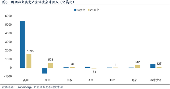 的确,年初至今,在美元贬值和美国例外论一定程度证伪的情况下,流入美股的资金较去年显著下降。