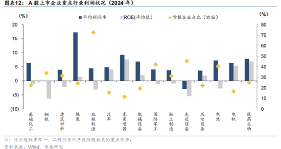 (3)利润状况。企业短期利益(保订单、现金流)与行业长期健康(去库存、稳价格)的冲突是自律机制的脆弱所在,企业的利润状况是其配合意愿的第一要素,当企业亏损越严重且无改善预期时,企业配合动力越强,但需要关注价格修复时对企业配合意愿和扩产动能的影响。截至2024年,农林牧渔(企业亏损比73%,后同)、光伏设备(46%)、电池(41%)亏损企业占比较高,而家用电器(12%)、汽车(16%)、电机(17%)等亏损企业占比较低。