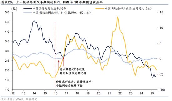 增长方面,短期对增长可能略有扰动,长期有利于高质量发展及增长带动效应。短期来看,“反内卷”对增长有所扰动,一方面降低企业资本开支,影响制造业投资需求,另一方面限产等直接影响生产端,再叠加需求预期变化,可能使得经济增速有所收敛,回顾上一轮供给侧改革,政策推进前期也是“价格筑底反弹+生产收敛”的走势。远期来看,理论上存在反内卷→价格底→企业利润→财政和居民收入的传导链条,修复经济循环和内生动能,企业经营格局的改善也有利于提振预期和信心,对供需均有积极影响,当然还取决于整体反内卷的政策效果,目前市场定价程度较为一般。