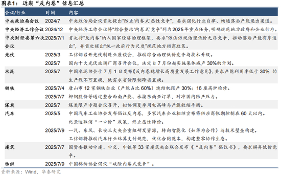 近日“反内卷”再度成为政策焦点和市场热点。今年政府工作报告已经提出了“反内 卷”,7月1日,中央财经委员会第六次会议与《求是》文章中强调:“依法依规治理企业低价无序竞争,引导企业提升产品品质,推动落后产能有序退出。”重点行业的“反内卷”工作也呈现出一些积极进展,汽车、钢铁、光伏等行业的自律措施正在积极落地。