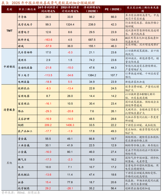 细分行业:关注业绩维持高增或边际改善领域