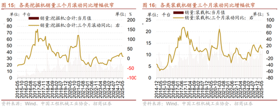 6月各类挖掘机销量同比增幅扩大,三个月滚动同比增幅收窄。6月销售各类挖掘机18,804台,同比增幅扩大11.18个百分点至13.30%,三个月滚动同比增幅收窄1.72个百分点至11.02%;1-6月,共销售挖掘机120,520台,同比增长16.8%;其中国内65,637台,同比增长22.9%;出口54,883台,同比增长10.2%。