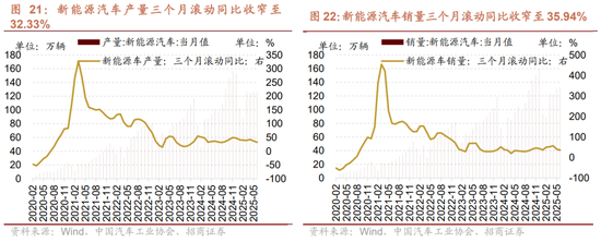 2)具备全球竞争力的优势制造领域:中游制造业整体利润在一季度有明显修复,二季度以来,由于出口驱动减弱,生产端增速放缓,同时供需错配仍存在,价格端持续低迷,中报业绩增速可能阶段性放缓,但仍有部分领域业绩有望改善;汽车受益于“以旧换新”政策提振与出口结构优化,5月汽车产销同比增幅扩大,新能源车销量延续较高增长,同时5月份外销增长13.7%;国防军工和自动化设备受益于全球制造优势,二季度订单边际回升,预计带动中报业绩环比改善;电网设备依托新型电力系统的发展机遇,中报业绩预计优势改善;