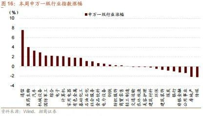 从行业上看,本周申万一级行业涨跌各半,通信(7.56%)、医药生物(4.00%)、汽车(3.28%)等表现相对较好;公用事业(-1.37%)、房地产(-2.17%)、传媒(-2.24%)等表现相对较差。从上涨原因看,本周表现较好的板块及主要原因:通信(光模块龙头业绩超预期叠加英伟达续创历史新高,大幅提升市场预期)、医药生物(CRO龙头业绩超预期,产业景气度仍在延续)、汽车(反内卷政策催化,且政策细则有望逐步落地);跌幅居前的行业原因,公用事业、房地产(上周超涨过后的技术性调整叠加市场风格从价值偏向成长)、传媒(短期缺少事件催化)。