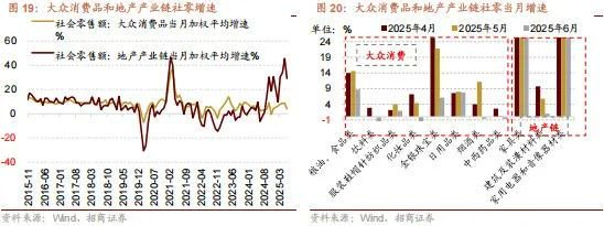 从商品类别来看,必选消费增速分化,前期大促透支需求之下可选消费增幅多数收窄或转负,大众消费品、地产产业链加权平均增幅均收窄,家电、家具、通讯器材、汽车在“以旧换新”加力扩围驱动下,增速相对较高或有改善。必选消费中限额以上粮油食品单月同比增幅收窄至8.7%(前值14.6%),服装鞋帽针纺织品增幅收窄至1.9%(前值4.0%)。可选消费中化妆品类同比转负至-2.3%(前值4.4%),金银珠宝类增幅收窄至6.1%(前值21.8%),中西药品增速转负至-0.7%(前值0.3%)。地产产业链当月加权平均增幅收窄至29.2%(前值45.4%),其中家用电器音像器材增幅收窄至32.4%(前值53.0%),建筑及装潢材料同比增幅收窄至1.0%(前值5.8%),家具同比增幅扩大至28.7%(前值25.6%);其他领域文化办公用品同比增幅收窄至24.4%(前值30.5%)、通讯器材同比增幅收窄至13.9%(前值33.0%)、汽车同比增幅扩大至4.6%(前值1.1%)。