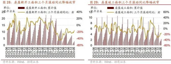 1-6月份房屋新开工面积、房屋竣工面积累计同比降幅收窄,商品房销售额、商品房销售面积累计同比降幅扩大。1-6月份房屋新开工面积累计同比下行20.00%,降幅较前值收窄2.8个百分点,三个月滚动同比收窄至-16.26%(前值-19.80%)。1-6月份房屋竣工面积累计同比下行14.80%,降幅较前值收窄2.5个百分点,三个月滚动同比收窄至-15.57%(前值-18.81%)。