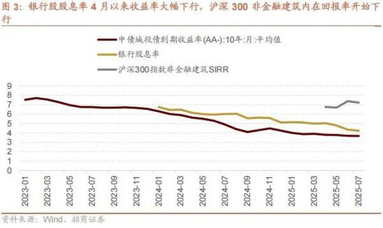 银行股股息率4月以来收益率大幅下行,沪深300非金融建筑内在回报率开始下行.