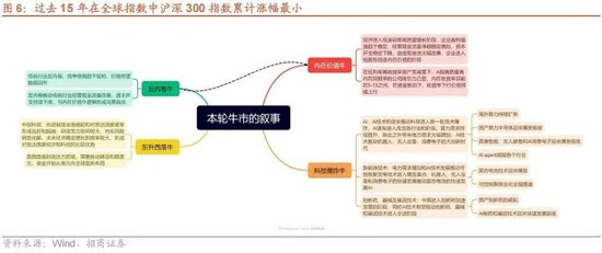 每一轮大级别行情,都少不了宏大叙事的贡献,而这一轮市场上涨,经济基本面改善的空间会相对有限。更需要宏大叙事的贡献,从目前来看,本轮牛市已经开始酝酿四大宏大叙事,分别是“内在价值牛”“科技爆炸牛”“反内卷牛”和“东升西落牛”。如下图所示。