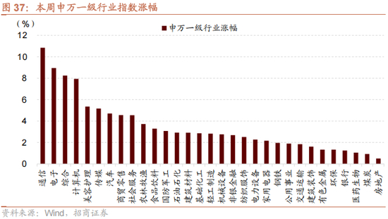本周A股市场普涨,万得全A上涨3.87%,沪深300上涨4.18%,创业板指上涨5.85%。A股涨幅居前的重要主题指数为服务器、GPU、光模块(CPO)。