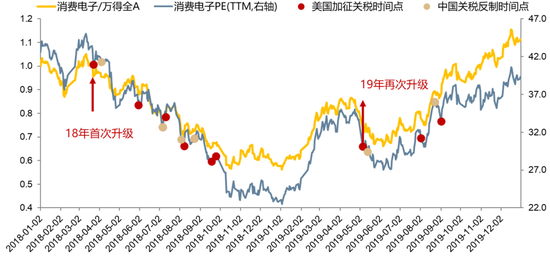 在18-19年贸易摩擦升温的过程中,19年5月关税升级时期A股的估值水平也高于18年下半年。