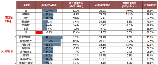 先前我们基于2025Q2订单指标(预收账款+合同负债)显著改善所筛选出的行业,如锂电、半导体、CXO等,在Q3展现出强劲的基本面与市场表现,营收增速普遍提升且股价表现领先,验证了订单指标对景气度的前瞻指引作用。
