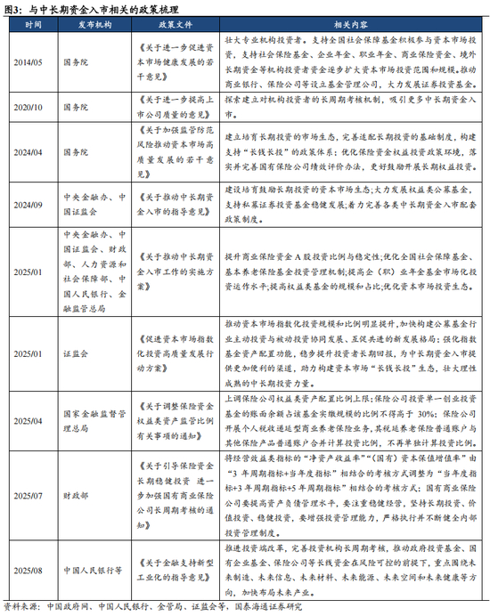 ▶政策端:加快推动中长期资金入市。2025年,《关于推动中长期资金入市工作的实施方案》发布,重点引导中长期资金进一步加大入市力度。这类资金期限长、对资本市场短期波动容忍度高,追求长期稳健回报,可发挥资本市场“压舱石”作用。资金类型主要包括商业保险资金、全国社会保障基金、养老金基金、理财产品等。