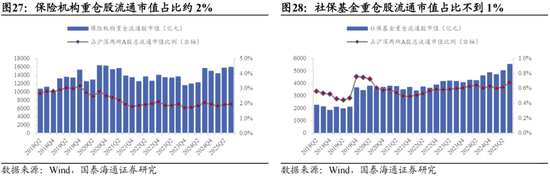 资产配置章节的分析表明,保险机构和社保基金的风险偏好相对理财子更强,在权益类资产上的配比更高。本小节重点分析Wind披露的这两类资金A股重仓流通股的投资特征,并着重强调趋势与差异。