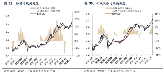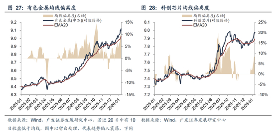 对于重新进入“趋势”阶段的产业主线,依然可以沿用均线偏离度的框架衡量趋势强弱。