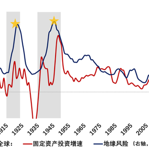 注:地缘风险为“战争威胁”表征的全球政治风险指数。