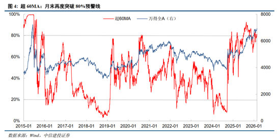 当前市场增量资金有限,整体处于存量博弈状态,我们跟踪的情绪分项指标超60MA(60周均线上方的强势股占比)月末再度突破80%预警线,这意味着如果后续增量资金不足,市场可能出现阶段性回调行情。(详见策略报告《节后市场情绪如何?——市场情绪跟踪2月报》)