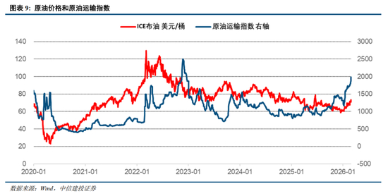 复盘俄乌冲突爆发后,能源品暴涨、避险资产温和走强。俄乌作为全球重要的能源和农产品出口国,冲突直接冲击全球供应链,国际原油和小麦价格飙升超过20%,布伦特原油一度超过120美元/桶。黑海航运受阻,相关贸易被迫转向其他区域,运输距离显著拉长,直接推升干散货运输需求。工业金属受供应链扰动和需求预期支撑,也有一定上涨。黄金作为传统避险资产,受地缘风险推动上涨2.5%,但涨幅受美元走强压制。