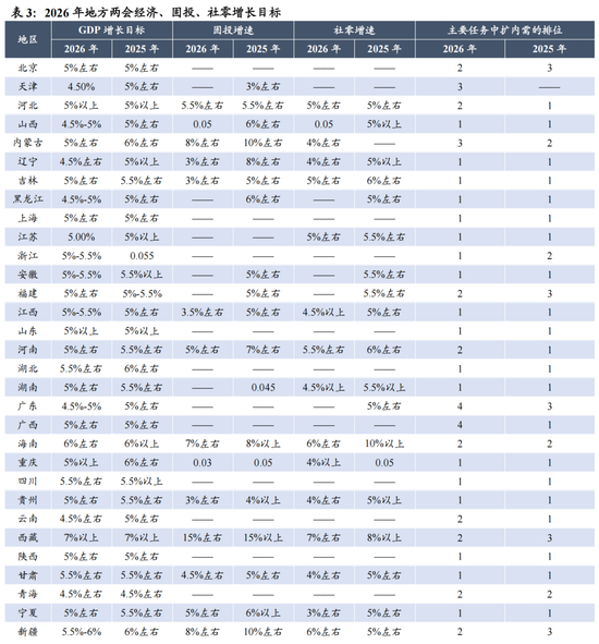 ▶全国两会召开在即,财政发力前置,市场有望上修中国经济预期。2025年中国科技突破和经济结构转型极大的振奋了社会发展信心,但近年来地产剧烈下滑和内需持续偏弱成为了居民预期和企业投资的重要掣肘。2月15日,总书记发表署名文章“当前经济工作的重点任务”中明确提出坚持内需主导,并表态“推动投资止跌回稳”。1)在政策预期上,全国两会召开在即,我们认为在赤字率、地方政府专项债、特别国债的规模安排会好于市场此前预期,收储+城市更新有望成为稳定地产的重要抓手。2)在地方两会上,各省政府工作报告中均提及“实现‘十五五’良好开局”的重要性,半数以上省份明确“稳增长、扩内需”为2026年首要任务。3)从行动上看,2026年财政前置发力明显靠前,1-2月新增专项债累计发行0.83万亿元,同比增长39.6%,有望推动实物工作量的形成与经济开门红。数据显示,春节后全国工地开复工率、资金到位率农历同比分别增加1.5%、9.4%,高炉开工率、水泥发运率均高于2025年农历同期。