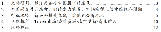 ▶主题推荐:1、Token出海:国产大模型全球调用量大增,中国模型资源嫁接全球AI需求,看好电力设备/绿电运营/国产算力。2、战略资源:美伊冲突威胁资源品供应安全,看好全球动荡局势下的工业品/能源金属/稀土/炼化等。3、城市更新:各地城市更新工作持续深入,看好更新改造需求下的消费建材/地下管网。4、商业航天:融资进程加速与多地部署航天产业发展,看好火箭制造与发射服务。