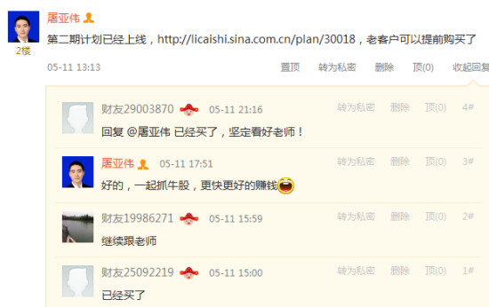 亚伟老师的新计划屠亚伟短线创富计划02期里,已经有不少首秀计划的老财友利用老用户特权加入,速速赶来鼓励老师啦!怎么样,坐在电脑前的你,是不是已经动心啦~~