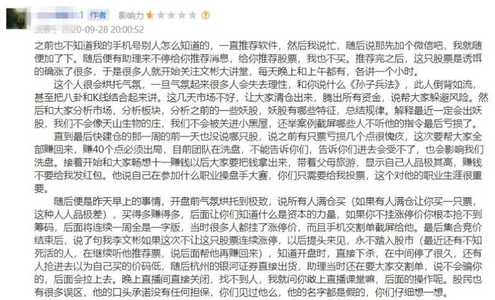 股吧里,部分投资者表示,是被一个叫李文彬的人骗了。