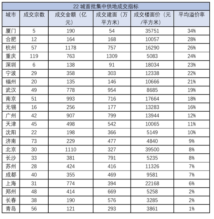 截至98日,全国22个集中供地城市中已有无锡、长春和厦门等三地完成了今年第二轮集中供地,另有14个城市公布了第二轮集中供地计划。和首轮相比,不少城市在拍地规则上作了重大调整,从稳地价出发达到稳房价稳预期的效果。
