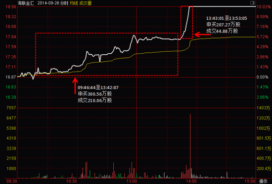 一路建仓,主动买入,并在下午快速拉升封涨停板。