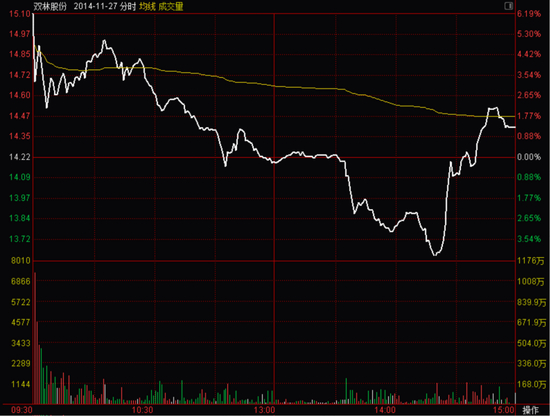 次日,双林股份高开6.38%,但因没有资金承接王耀沃的抛盘,股价最后一路震荡走低。