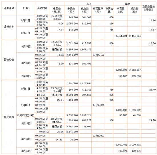 目前确认有孙国栋身影的交易席位,包括:湘财证券台州市府大道营业部(出货为主)、国元证券上海虹桥路、中信证券上海溧阳路、国泰君安上海江苏路、国泰君安证券上海新闸路、中泰证券宁波江东北路、光大证券宁波和义路、银河证券绍兴营业部、国泰君安深圳益田路、国金证券上海奉贤区金碧路、中信证券杭州定安路、光大证券杭州庆春路等。