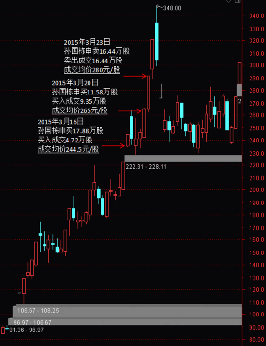 注意看,孙国栋在3月16日、20日的买入成本分别为244.5元/股、265元/股,而卖出时为280元/股,赚钱实在太容易了。