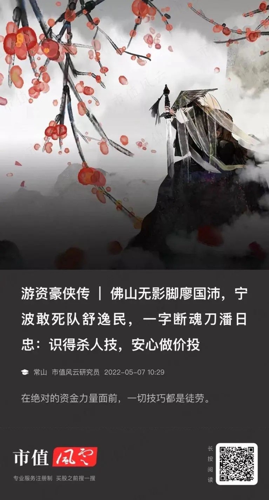 当然,A股也不全是职业短线客的天下,毕竟短线客还是太LOW,打一枪换一个地方、涸泽而渔、连根刨韭菜,很不招监管待见,所以再了不起的短线客,最多也就是风光个三两年,就会被六扇门的兄弟踹门而入,当场拿住,送去唱铁窗泪了。