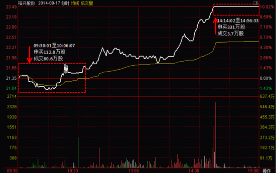 为了能快速出货兑现利润,其利用集合竞价规则漏洞,通过几笔大单申报,操纵了裕兴股份在9月18日的开盘价,并借机在高位卖出股票。