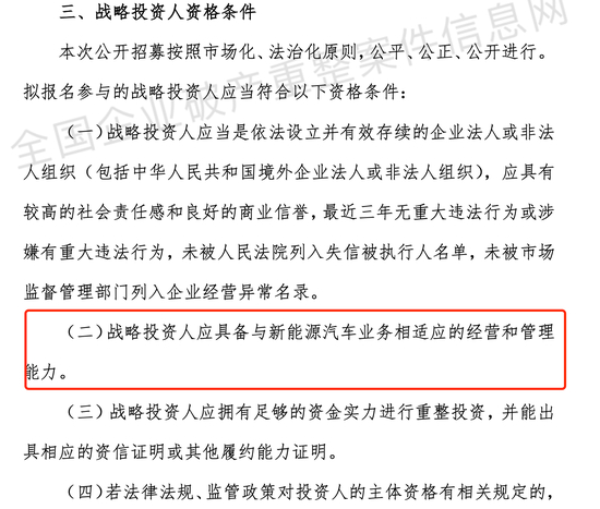 为了推动威马汽车重整,引进投资人。管理人早在2024年1月15日在全国企业破产重整信息网发布了《关于威马科技集团招募战略投资人的公告》和《关于威马科技集团招募共益债投资人的公告》。《每日经济新闻》记者留意到,威马汽车方面特别要求,引入的战略投资人应具备与新能源汽车业务相适应的经营和管理能力。