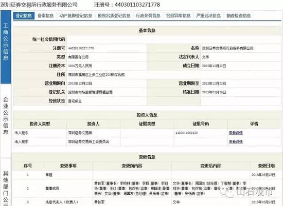 而深圳证券交易所行政服务有限公司,注册资本5000万,深交所为其主要股东,认缴额4500万,深圳证券交易所工会委员会,为另一股东,认缴额500万。